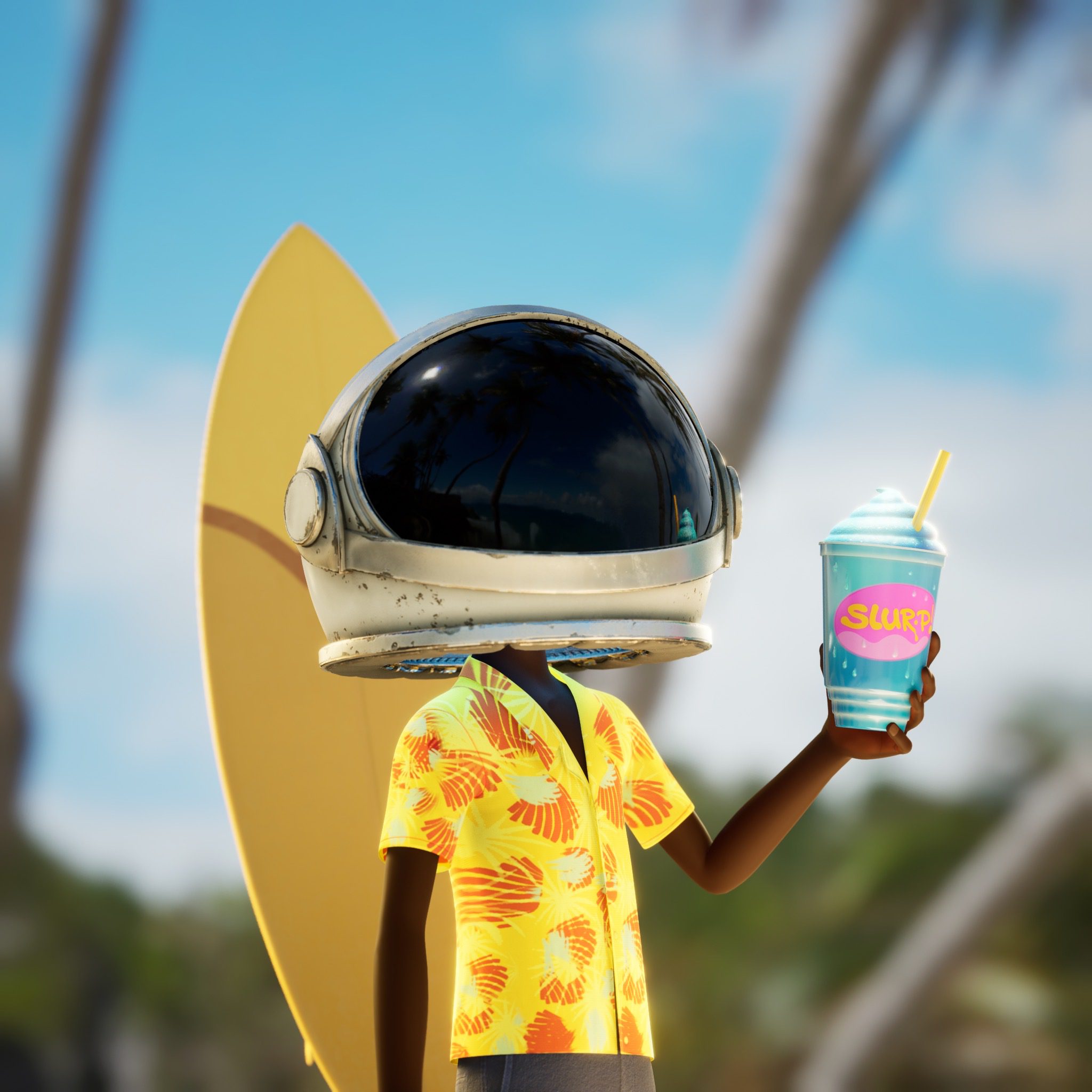 Aku began as a NFT series based on Johnson’s own experience of hearing a young boy ask if astronauts could be Black. The NFTs are short video clips that follow Aku, a young boy with an oversized space helmet that acts as a portal to his dreams and digital exploration. The 10-part