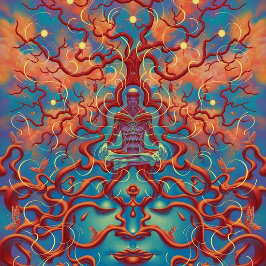 I really resonate with Alex Grey. The immense power of psychedelics that have revealed so much of my inner workings of my psyche is something that he has portrayed beautifully for decades. What I also resonated with him, and was inspired by him, but took it into a new direction, is his focus on the human anatomy. While he depicts an x-ray version of human anatomy, with muscles and veins, I use the human anatomy models as a way of transcending race, to make my art about the universal experience of being a human. It was something I was struggling to achieve. I am an Eastern European male with dark features, and my art inevitably was inspired by me, and I often used myself as a subject of my own art. But despite my art being a visual journal of my personal human experience, I wanted my art to transcend me as an individual that looks a certain way. And I remember looking at Alex Grey’s art and thinking, I really enjoy the simplification of features where the rendered subject would allow the viewer to imagine themselves in the piece easier. So that was a big part of my inspiration, but that is really mainly it, as least that I am aware of.